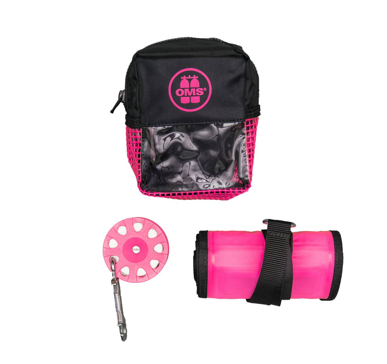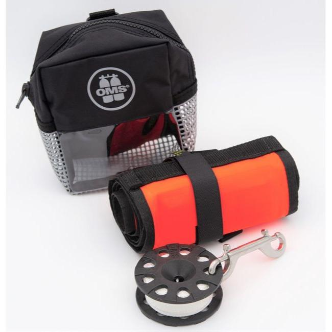 The Safety Sets contain a small mesh carrying bag-Safety Pocket, an OMS Surface Marking Buoy (SMB) and a Finger Spool with a stainless steel BigGrip Double Ender. You have multiple SMB size and type options and Spool lengths depending on your intended use and diving environment so choose the safety set that most fits your needs. The Vintage Red/yellow, Pink/black, and Grey/black colors of the safety pocket provide high visibility and the durable plastic coated mesh pocket provides excellent drainage. All options include the convenient Safety Pocket that easily attaches to any 2 #34; webbing. A marine grade zipper allows for easy access but offers secure closure even in rough conditions. The SMB HYBRID 6.0 from OMS is unique in the fact that it can be inflated in 3 ways; using an octopus at the opening on the bottom through a one way duck valve allowing air only in one direction, with the inflator valve by using your inflator / dry suit quick disconnect hose or by orally inflating with your mouth. Comes in orange, yellow or pink and is 1.8 meters long. The 75 Spool new and improved design allows the diver to create drag and effectively control the speed of the line by easily squeezing the center of the spool. This feature is particularly useful for divers who deploy their SMB’s at depth.